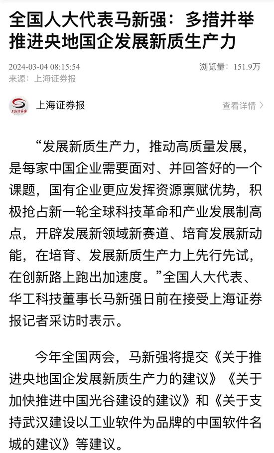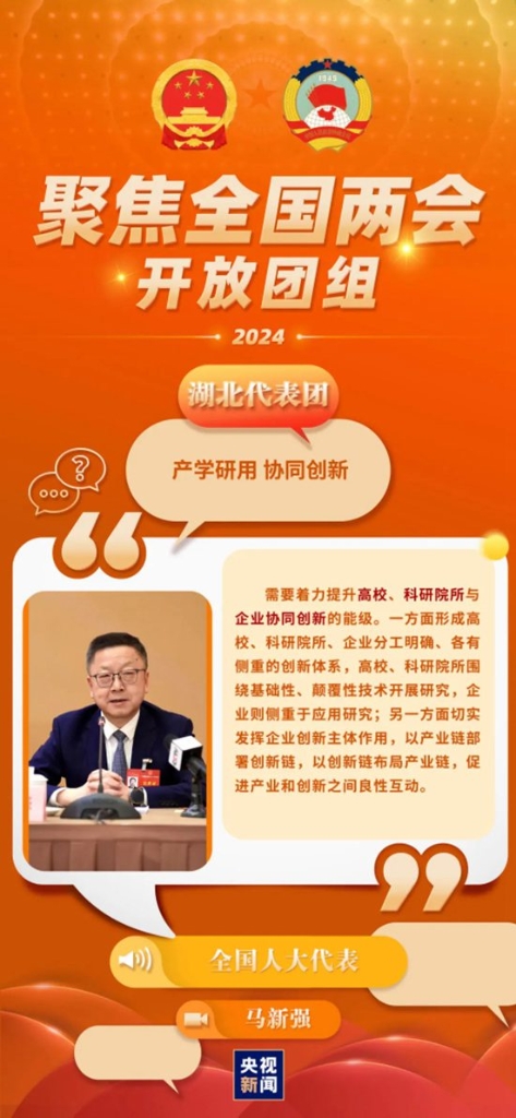 全國人大代表馬新強:“新質生產力關鍵在于創新和產業之間的良性互動,科技成果只有應用到具體產業和產業鏈上來,才能鍛造出優質的產品,更好地推動產業創新、現代化產業體系建立?!?/p>