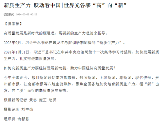 發展新質生產力,推動高質量發展,是每家中國企業需要面對、并回答好的一個課題,國有企業更應發揮資源稟賦優勢,積極搶占新一輪全球科技革命和產業發展制高點,開辟發展新領域新賽道、培育發展新動能,在培育、發展新質生產力上先行先試,在創新路上跑出加速度。